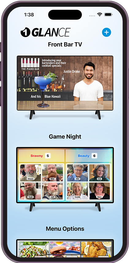 For Business: 1Glance lets you build Menus, General Info, Slideshows, Feature Bartenders & Staff, Drink Specials, and even create a Waiting List.